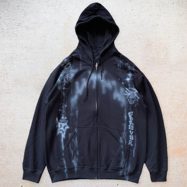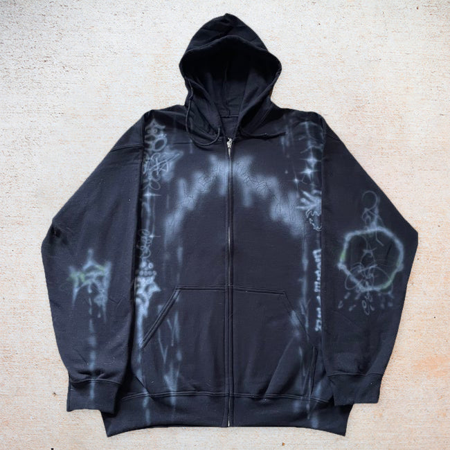 Statement-print streetwear long-sleeve zip-up hoodie