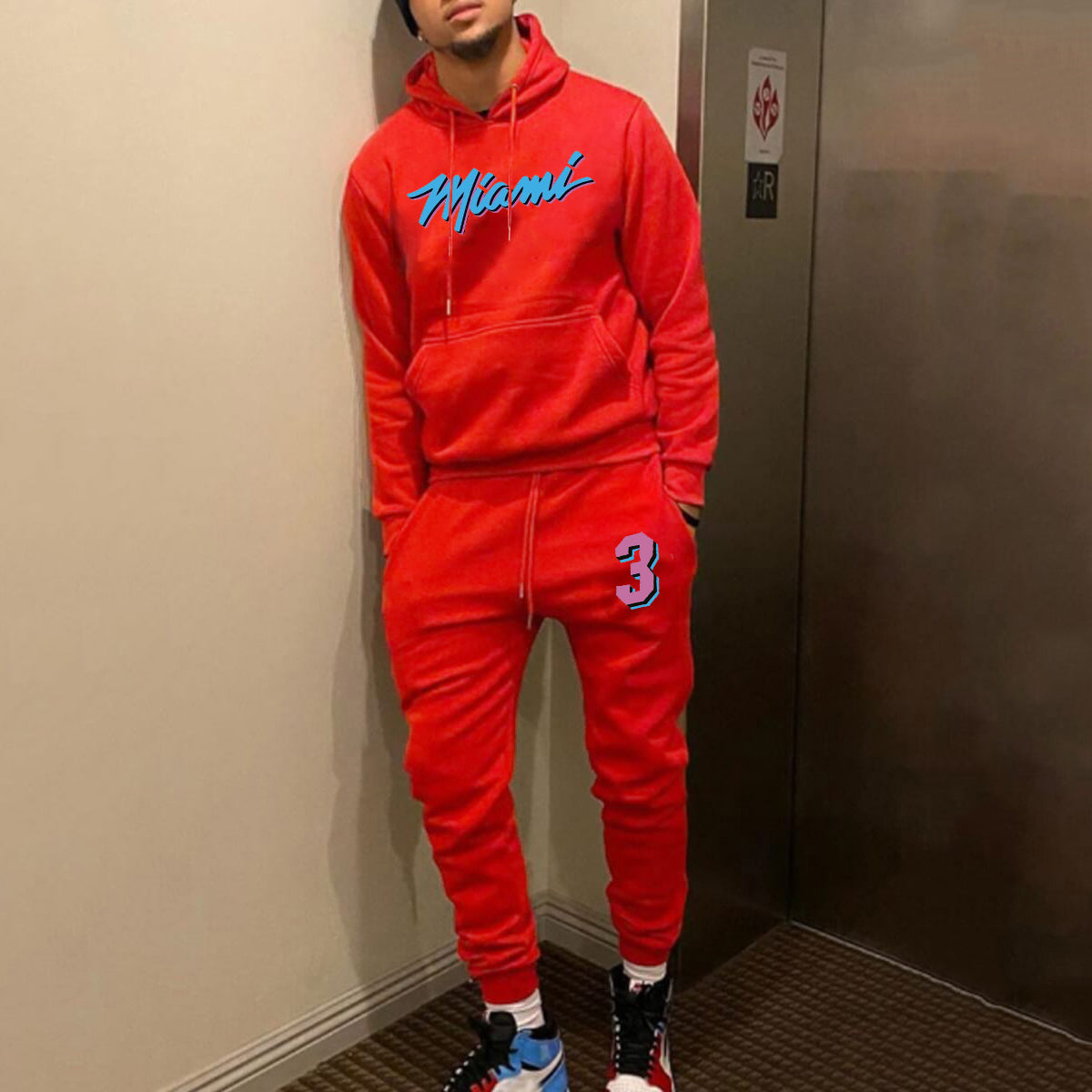 Casual Miami Print Hoodie And Pants Two Piece Set