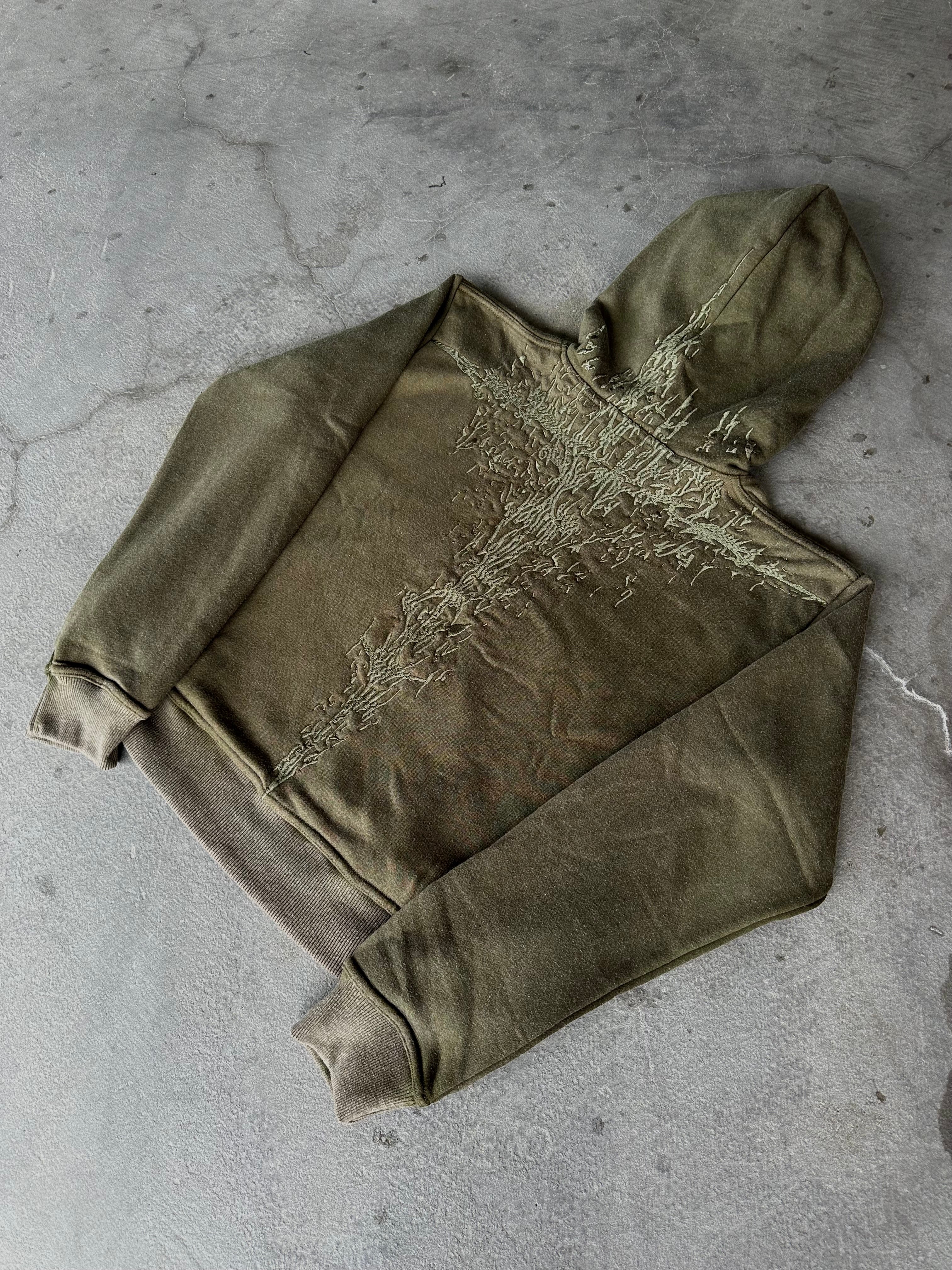 -BACK EMBROIDERY COVERING THE ENTIRE BACK AND SEEPING ON THE HOOD