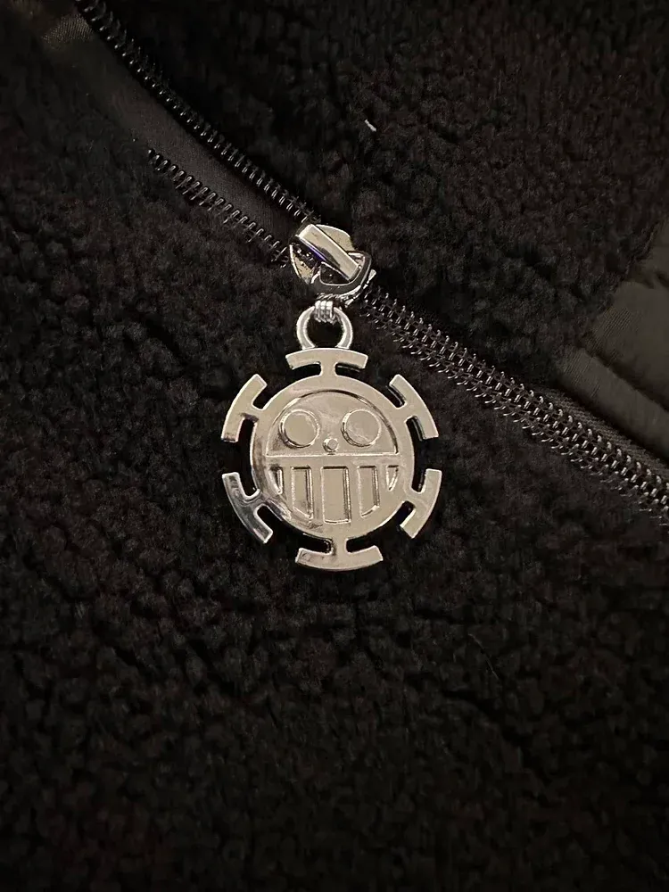 This is a reversible sherpa jacket with patterns and motifs from Eichiro Oda's One Piece.