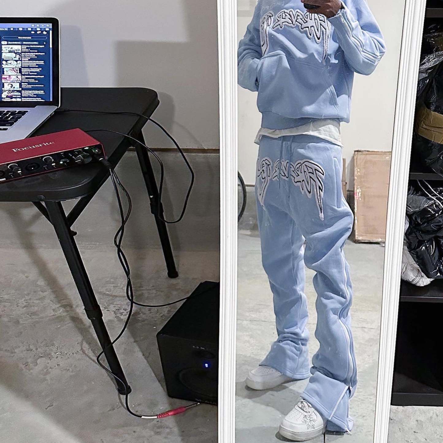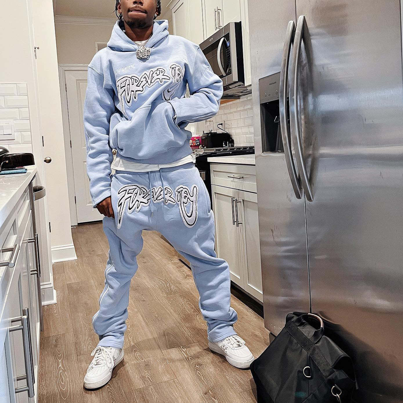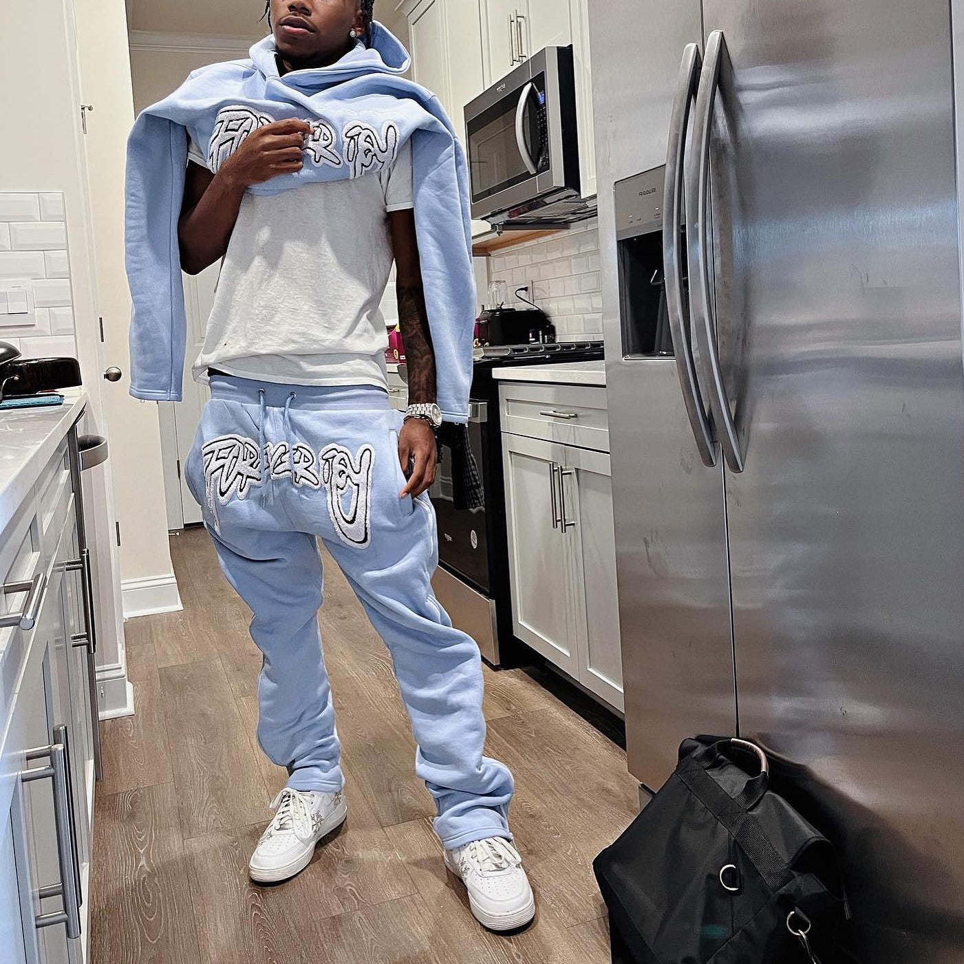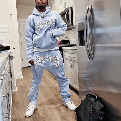 Personalized Fashion Letter Print Pattern Zipper Trousers Set