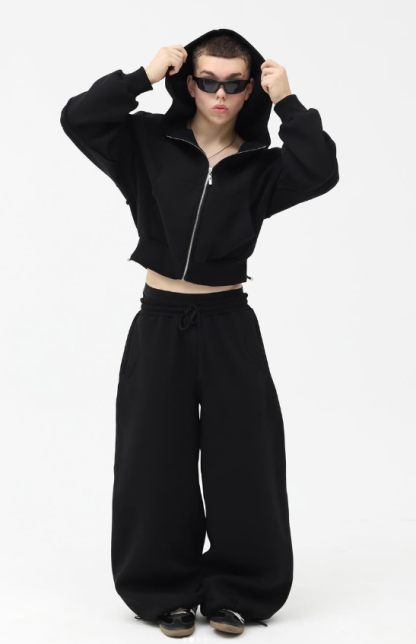 Solid Color Wide Leg Hoodie Set
