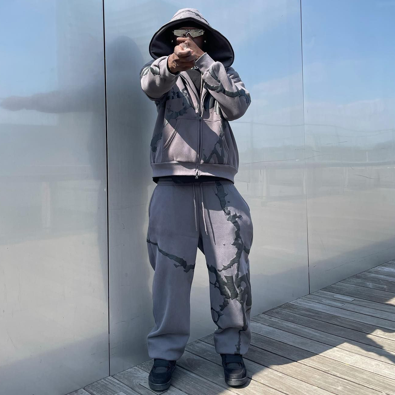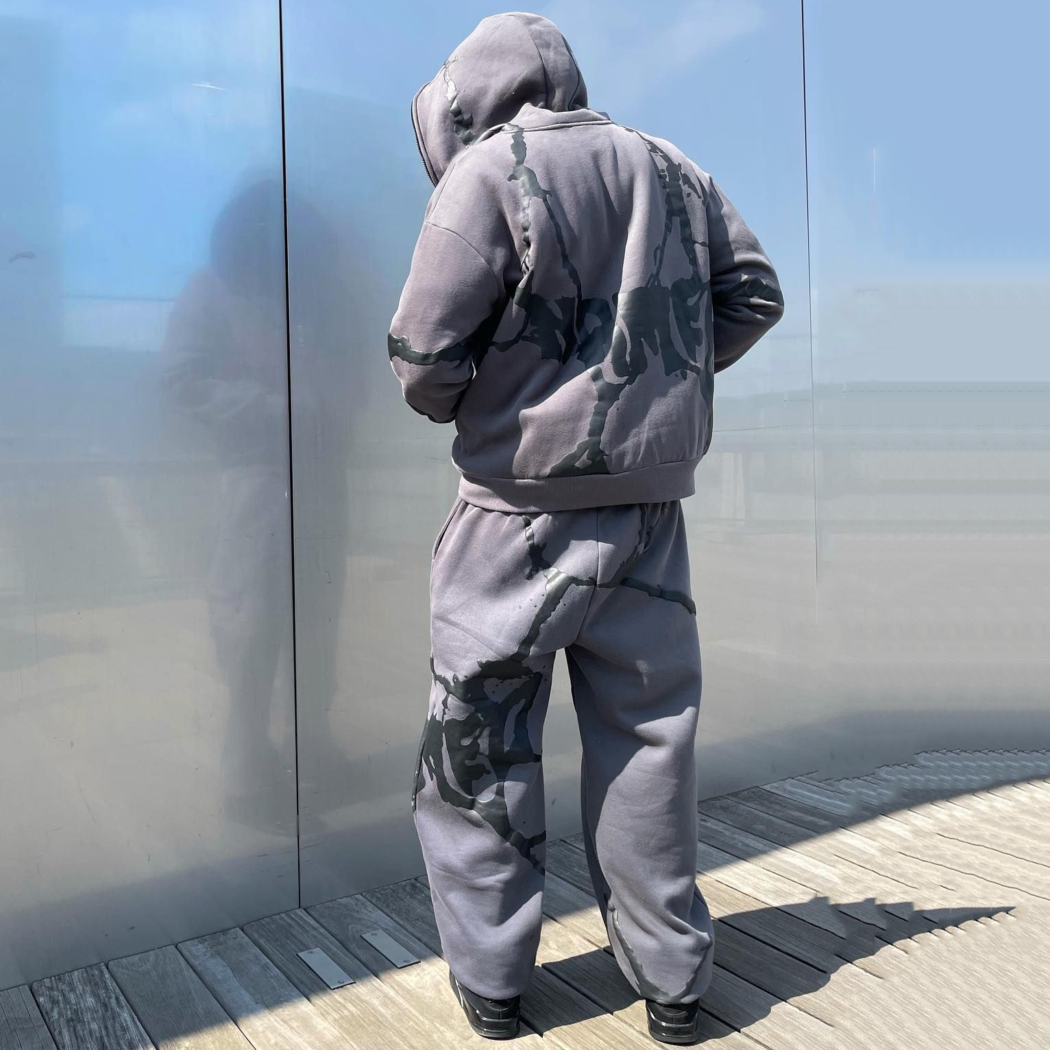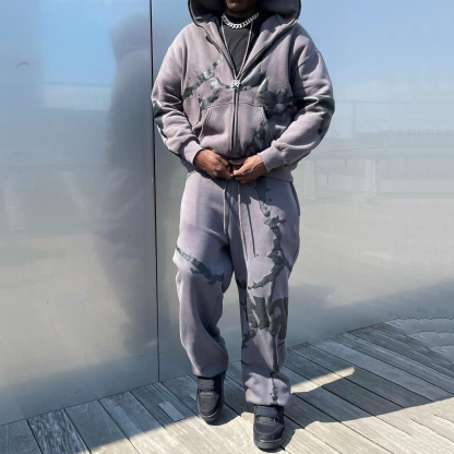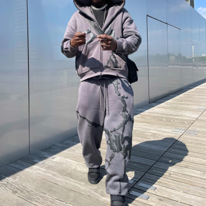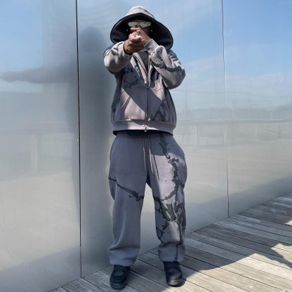 Stylish Full Zip Hoodie Sweatpants Print Two Piece Set