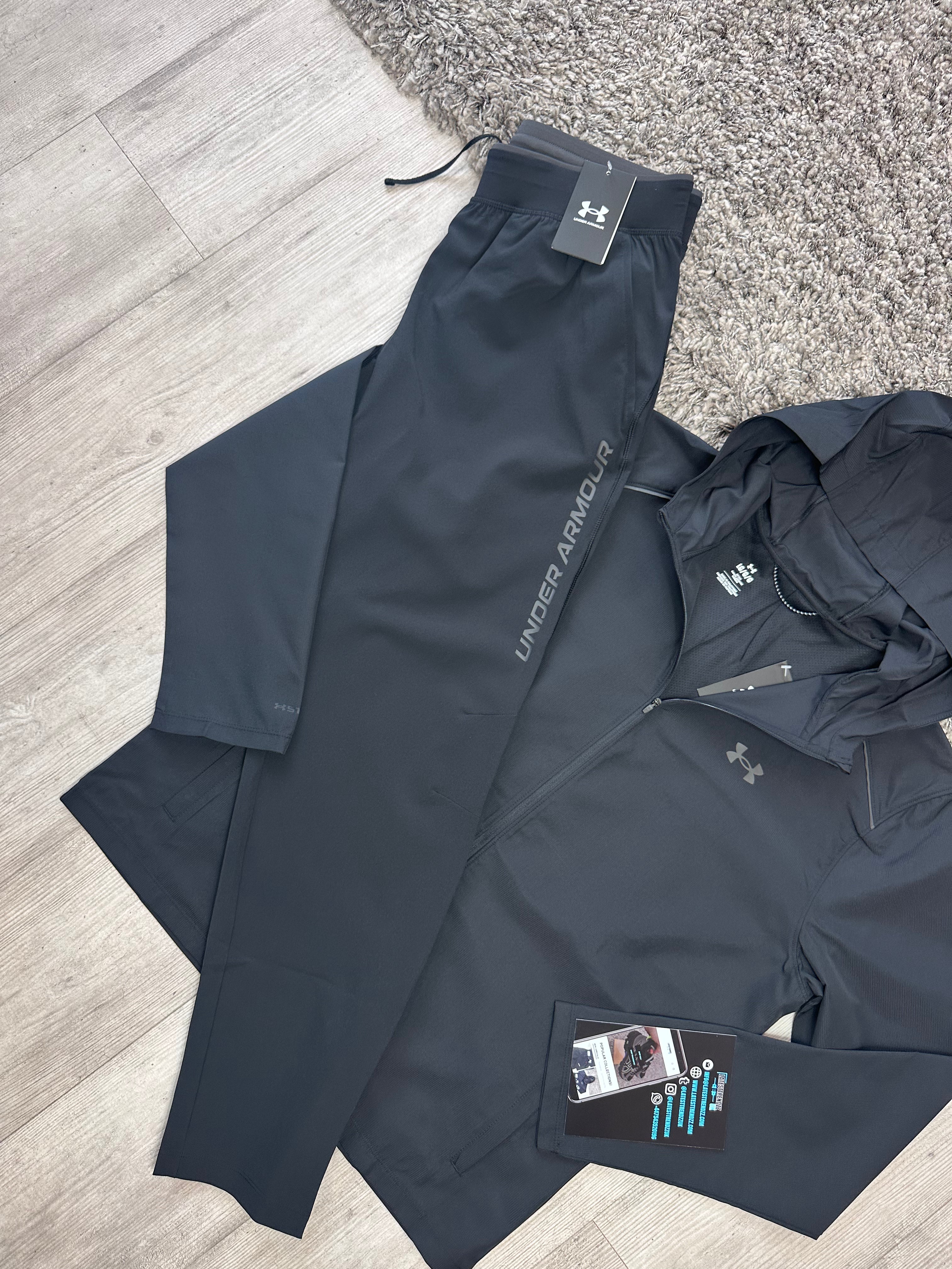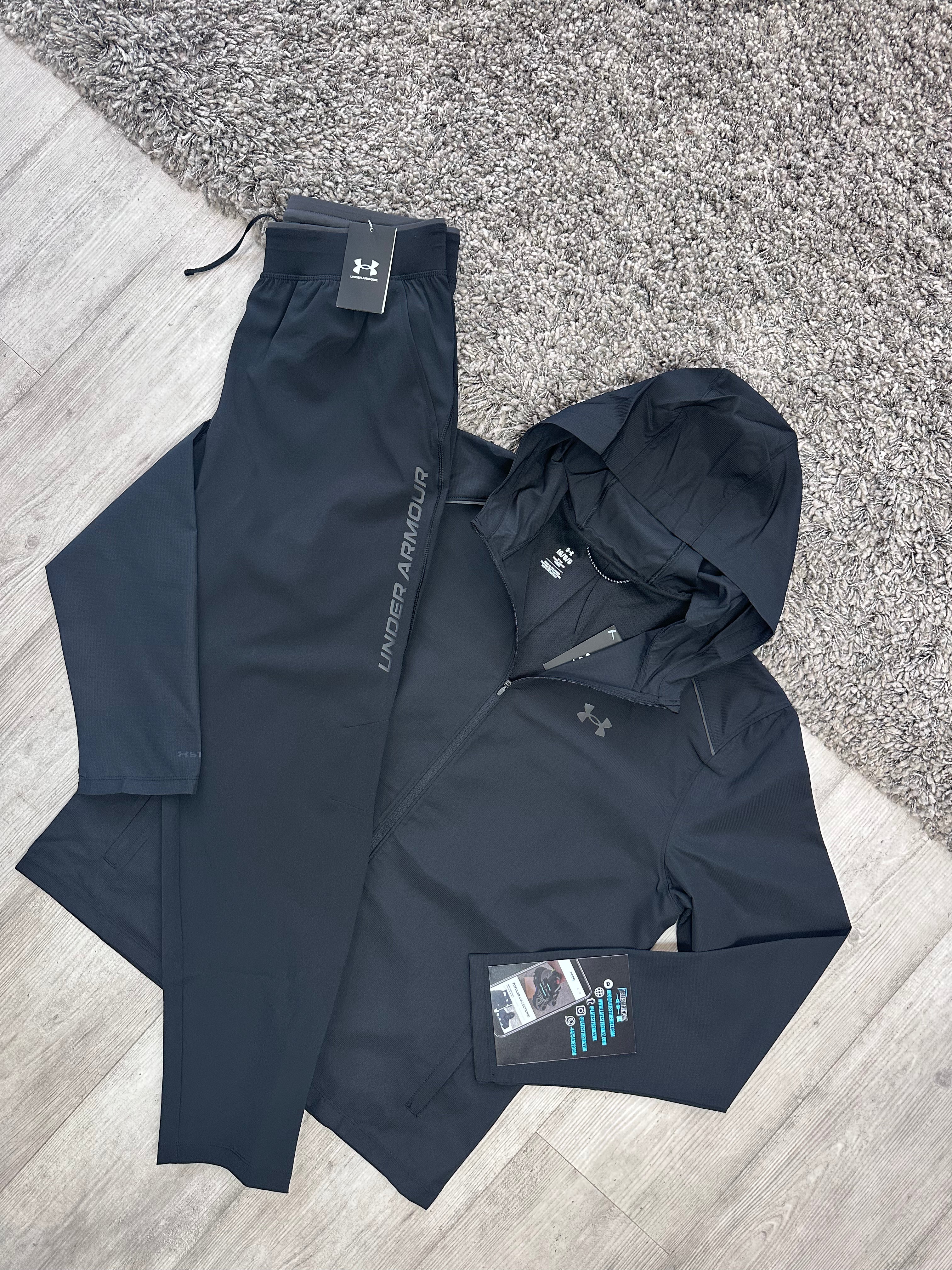Stay dry and protected from the elements with the UNDER ARMOUR LAUNCH TRACKSUIT. UA Storm technology repels water while the wind-resistant construction shields you. The lightweight, durable fabric allows for enhanced mobility and comfort, complete with reflective taping for low-light visibility. The pants also feature a stretch waistband and functional pockets.
