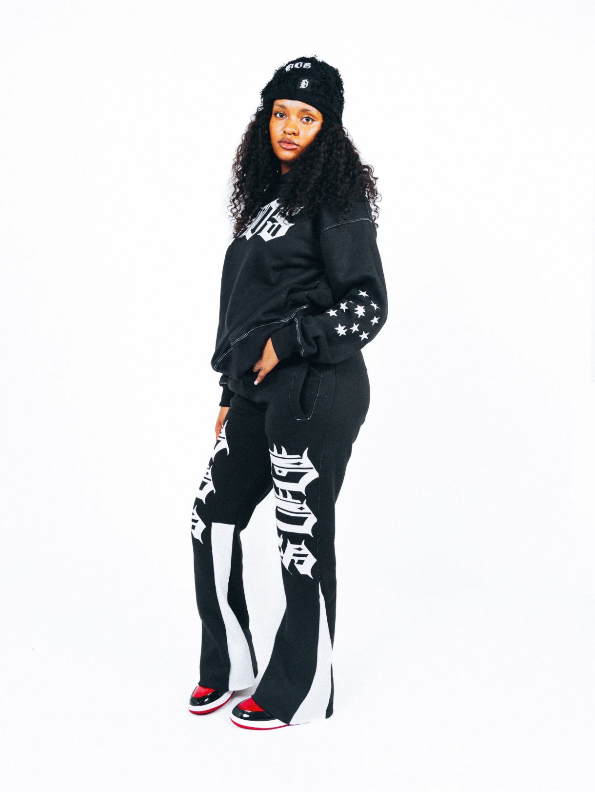 White stitching, white bottom panels