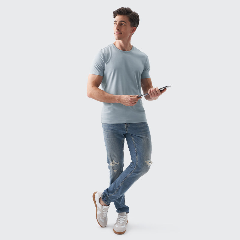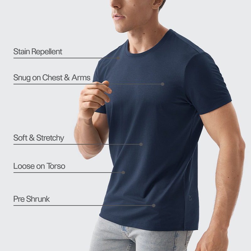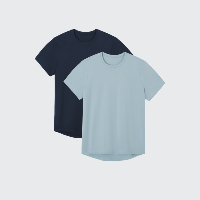 Upgrade your wardrobe with the _FRESH Coastal Pair (Signature Fit) 2-Pack, featuring two _FRESH Stain-Repel Signature Tees in Sierra Blue and Navy. Designed with TexTale’s EasyClean™ technology, these tees offer stain resistance and a tailored fit that enhances your chest and shoulders. Perfect for any occasion, this duo combines sleek style with everyday functionality. Available in sizes S to 3XL.