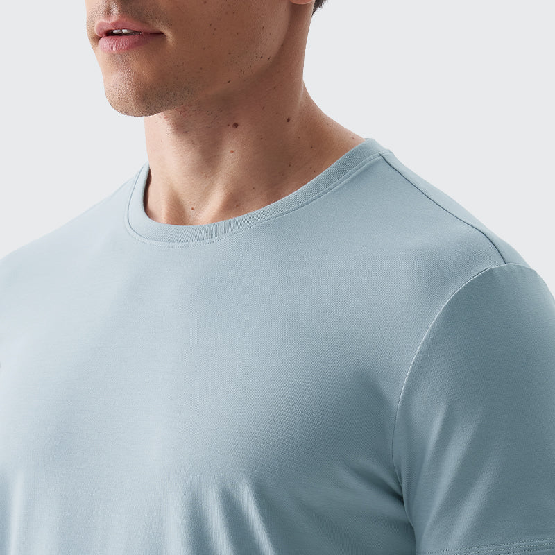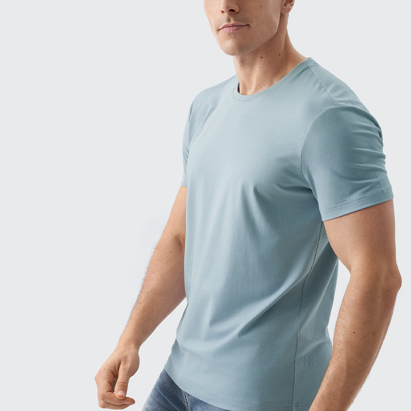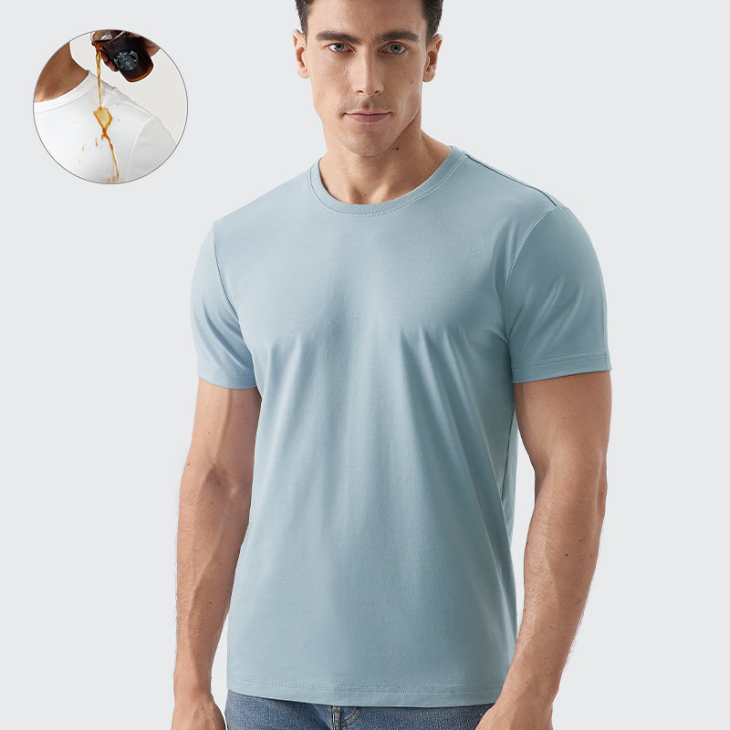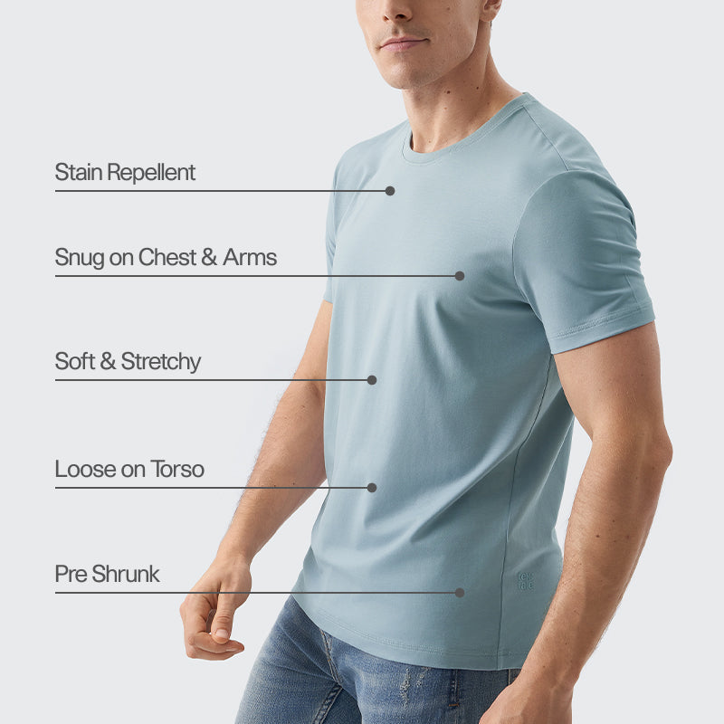 Discover the _FRESH Stain-Repel Signature Tee in Sierra Blue, crafted with TexTale’s advanced EasyClean™ fabric technology that resists stains, keeping you looking sharp all day. Made from a premium blend of 50% Cotton and 50% Lenzing™ Modal in a 240gsm double jersey fabric, this tee offers breathable comfort and a sleek, Signature Fit that enhances your shape. Thoughtfully designed for a tailored look, it features a ribbed neckline that holds its shape and pre-shrunk fabric to ensure a consistent fit wash after wash. Available in sizes S to 3XL, this tee seamlessly combines functionality and style to elevate your wardrobe.