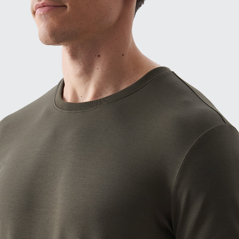 Discover the _FRESH Stain-Repel Signature Tee in Stealth Green, crafted with TexTale’s advanced EasyClean™ fabric technology that resists stains, keeping you looking sharp all day. Made from a premium blend of 50% Cotton and 50% Lenzing™ Modal in a 240gsm double jersey fabric, this tee offers breathable comfort and a sleek, Signature Fit that enhances your shape. Thoughtfully designed for a tailored look, it features a ribbed neckline that holds its shape and pre-shrunk fabric to ensure a consistent fit wash after wash. Available in sizes S to 3XL, this tee seamlessly combines functionality and style to elevate your wardrobe.