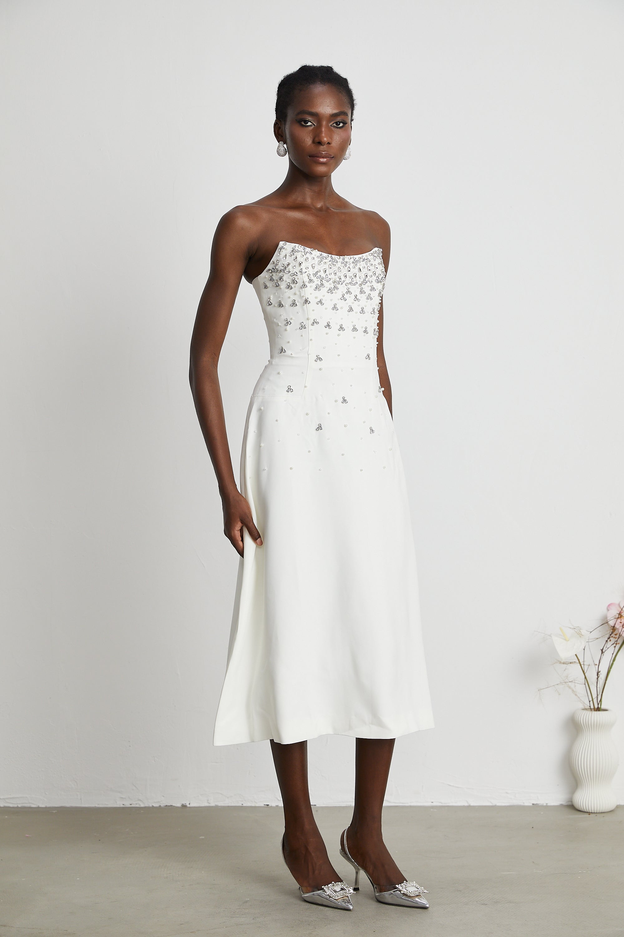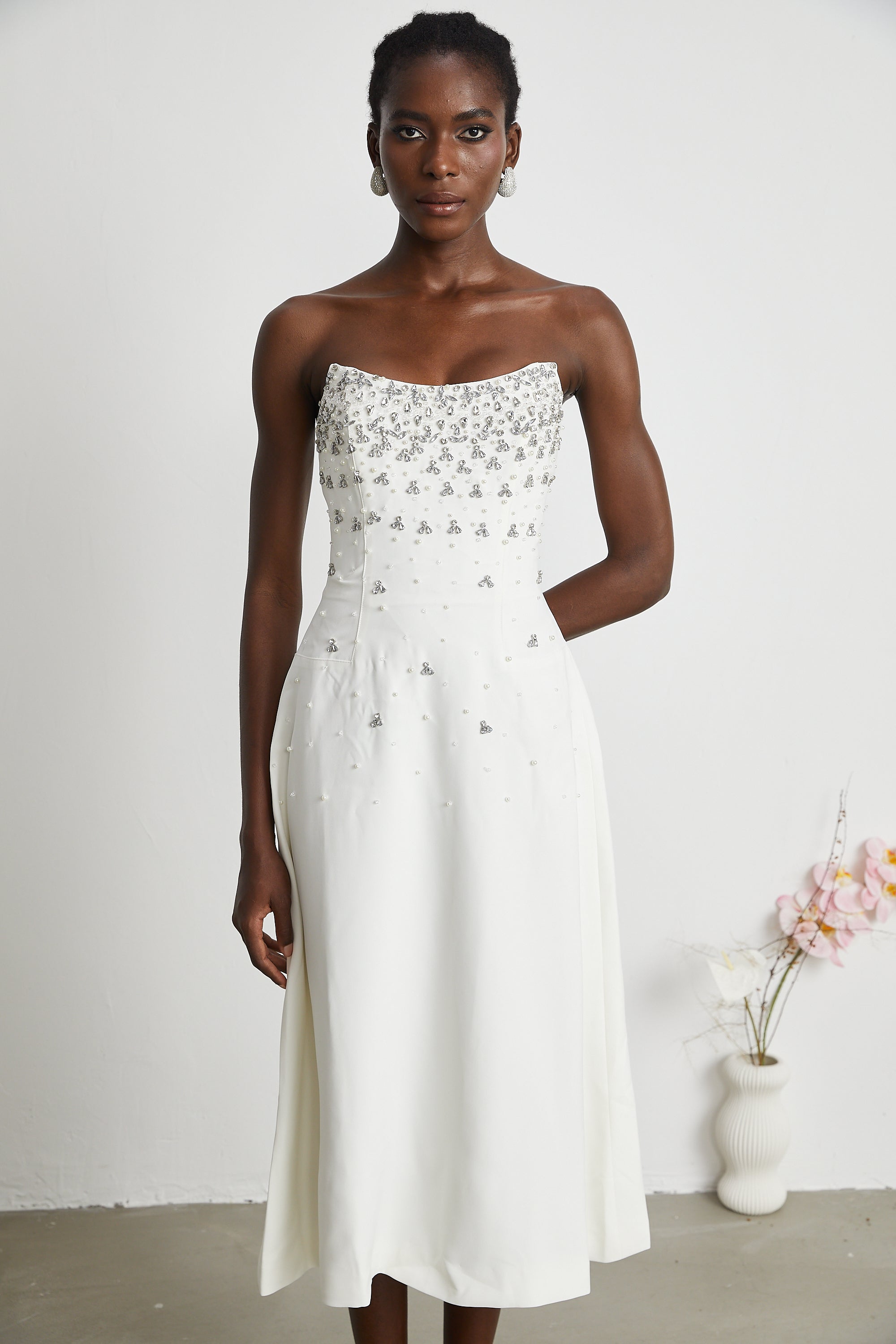 • IMPORTANT NOTICE: By ordering Melisande dress, you are abiding to the fact that all pearls & crystals are handmade. The occasional shedding and breakage of a very small number of pearls & crystals is a normal phenomenon. Even high-end or luxury brands encounter this.
