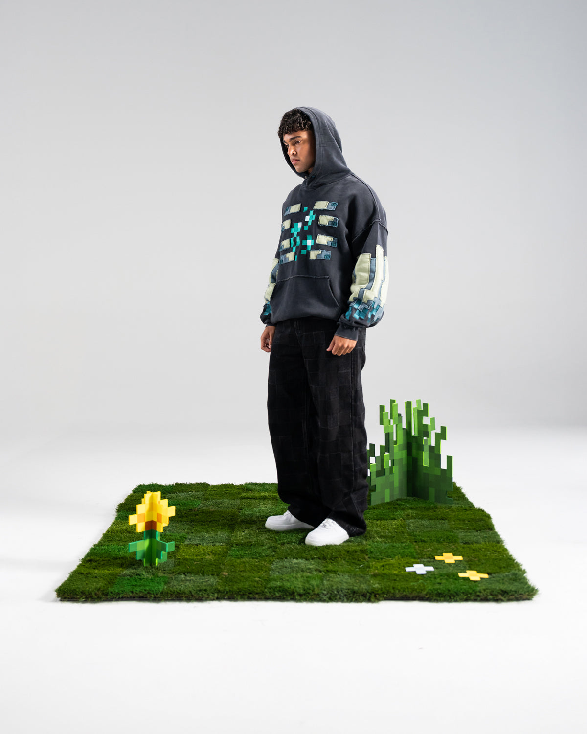 • Very Cool x Minecraft Acid Wash Overlap Pullover Hooded Jumper
